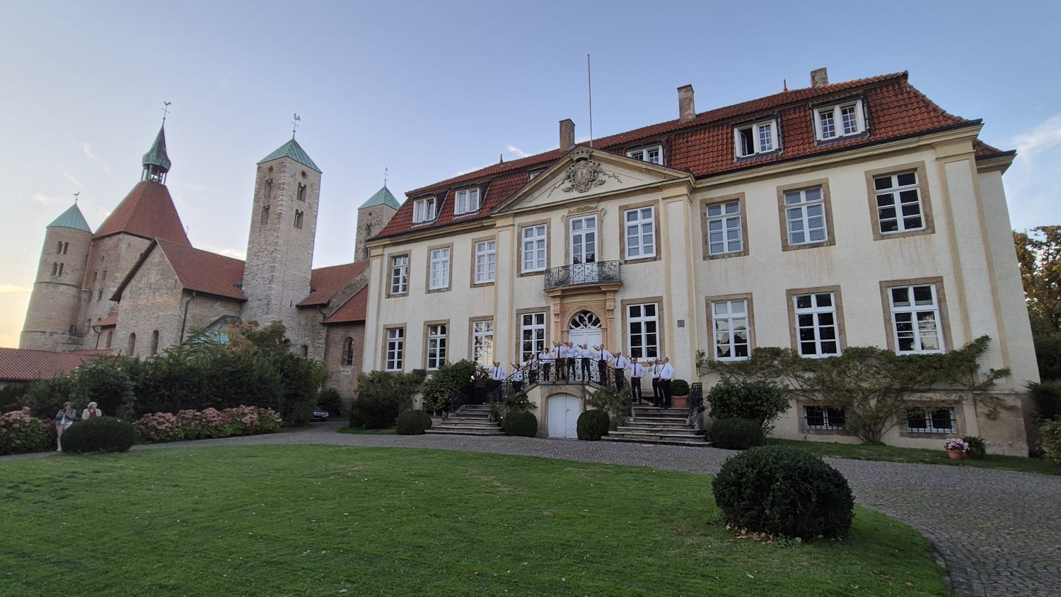 An zwei Terminen im Jahr organisiert die Werbegemeinschaft Freckenhorst eine kulinarische Tour durch den Warendorfer Stadtteil. Das Jagdhornbläserkorps begrüßt die Gäste vor dem Freckenhorster Schloss und begleitet sie auch am ehemaligen Bahnhof.